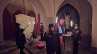 Dort fand eine kurze Gedenkfeier statt, bei der den verstorbenen Mitgliedern der jeweiligen Körperschaften und Vereine gedacht wurde.