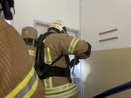 Um die Übung möglichst realitätsnah zu gestalten, erhielten die Trupps die Einsatzmeldung über das Funkgerät und durften sich erst bei der Anfahrt ausrüsten. Am Übungsobjekt angekommen erhielt der Einsatzleiter weitere Informationen. Während sich die Atemschutztrupps fertig ausrüsteten, wurde parallel dazu eine Löschleitung aufgebaut. Da die Türen versperrt waren, mussten die Atemschutzträger sich zuerst einen Zugang verschaffen, um mit der Menschenrettung und der Brandbekämpfung zu beginnen. Unter Nullsicht mussten jeweils immer vier Personen gesucht und gerettet werden. Am Nachmittag hatten die Ausbildungsteilnehmer die Möglichkeit, gemeinsam mit erfahrenen Kameraden zu üben und ihr Wissen auszutauschen.
