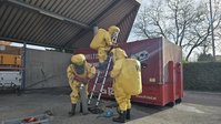 Zu Beginn wurde intensiv das Richtiges “An- und Auskleiden" des Schutzanzuges geübt. Ein wichtiger Schritt um im Ernstfall sicher geschützt zu sein und weitere Kontamination zu vermeiden. Die zweite Station forderte die körperliche Leistungsfähigkeit der Einsatzkräfte. Mit verschiedenen Belastungsübungen wurde simuliert, wie anstrengend Arbeiten unter Vollschutz ist. Ziel war es, Kraft, Ausdauer und Beweglichkeit im Anzug zu trainieren und die persönlichen Grenzen realistisch einzuschätzen.