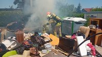 Die Einsatzkräfte konnten den vor dem Abfallcontainer gelagerten Sperrmüll rasch ablöschen und eine Ausbreitung auf die Hecke somit verhindern.