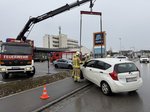 Aus unbekannter Ursache verlor ein Lenker die Kontrolle über sein Fahrzeug und kam im Wassergraben bei einem Lebensmittelgeschäft mit den Antriebsrädern in der Luft zum Stillstand. Die Feuerwehr Ried konnte das Fahrzeug mit dem Ladekran des Wechselladerfahrzeugs aus dem Graben heben und wieder auf alle vier Räder absetzen. Nach rund einer ¾ Stunde konnte der Einsatz wieder beendet werden.