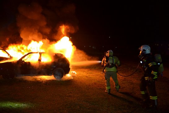 Am Mittwoch, den 12. November 2025, stand eine Einsatzübung auf dem Ausbildungsplan der Freiwilligen Feuerwehr Ried. Übungsort war das Messegelände Ried, wo zur realitätsnahen Darstellung des Einsatzszenarios zwei Fahrzeuge in Brand gesetzt wurden.
