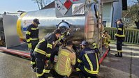 Gemeinsam mit den Kameraden der Feuerwehr Neuhofen wurde der Abrollbehälter einen ganzen Tag lang intensivst beübt. Es wurde unzählige verschiedenste Schadstoffaustritte sehr realitätsgetreu simuliert und dabei unterschiedlichste Techniken zur Abdichtung ausprobiert. Die Einsatzkräfte konnten an diesem Tag Ihre Erkenntnisse hinsichtlich Abdichten von Leckagen vertiefen. Mit Teamarbeit und guter Kommunikation konnten alle Szenarien erfolgreich gemeistert werden.