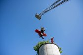 Der zweite Ausbildungstag führte die Teilnehmer auf das Gelände eines Grieskirchner Unternehmens (Plohberger). Dort galt es, mehrere Personen von einem 45 Meter hohen Dach sowie einen Verunfallten unter schwerem Atemschutz aus einem Silo zu retten. Beide Szenarien verlangten höchste Präzision, Teamarbeit und den sicheren Umgang mit Spezialausrüstung.