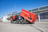 Die maximale Hubkraft beträgt 20 Tonnen. Die Steuerung des Abrollkippers kann entweder kabelgebunden direkt vom Fahrersitz aus erfolgen oder über eine Funkfernbedienung. Letztere erlaubt es dem Bediener, das Fahrzeug zu verlassen und den Hubvorgang sicher neben dem Fahrzeug zu überwachen, wodurch maximale Kontrolle und Sicherheit gewährleistet sind.