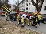 Aufgrund der beengten Verhältnisse im Treppenhaus war es den zwei im Einsatz befindlichen Fahrzeugen des Roten Kreuzes nicht möglich, den Patienten selbstständig zu transportieren. Die Feuerwehr wurde daher nachalarmiert, um den Patienten zu retten. Der adipöse Patient befand sich im ersten Obergeschoss und wurde über ein Fenster mit der Drehleiter gerettet. Anschließend wurde er dem Roten Kreuz übergeben, um den weiteren Transport zu übernehmen.