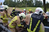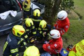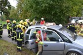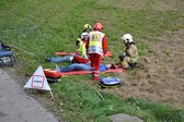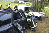 Die Feuerwehr Ried widmete sich der Betreuung und Rettung des in dem PKW eingeklemmten Fahrers, der auf der Seite zum Stillstand kam, sowie des Fahrers des blauen Fiat. Die Mannschaft hat umgehend die Bereitstellungspläne für die Patientenrettung aufgebaut und das Personal zur Betreuung eingeteilt. Die Befreiung wurde unter Einsatz der hydraulischen und der akkubetriebenen Rettungsgeräte eingeleitet. In einer engen und effizienten Zusammenarbeit der drei Feuerwehren und des Roten Kreuzes konnten alle Patienten erfolgreich aus ihren schwerst eingeklemmten Fahrzeugen befreit und zur weiteren Versorgung an das Rote Kreuz übergeben werden.