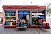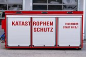 Der unter normalen Umständen am Last 3 WLF aufgesattelte Container ist mit den wichtigsten Materialien für Unwettereinsätze beladen.