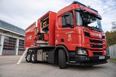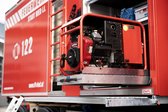 Der Abrollbehälter kann vom Trägerfahrzeug abgesattelt und autark an der Einsatzstelle betrieben werden. Zur Absicherung sind am Container orange Warnblinkleuchten sowie am Heck blaue Blitzleuchten montiert. Um den Einsatzkräften ein optimales Arbeiten zu ermöglichen, wurde eine LED-Umfeldbeleuchtung installiert.