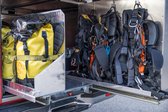 Ausrüstung: Korbschleiftrage, 5 Stk. Auffanggurte, 680 lfm. Kernmantelseile, Sanitätsrucksack, Kantenschoner, 40 Stk. versch. Bandschlingen, 50 Stk. versch. Karabiner, Abseilgeräte, Abdeckplane für Sturmschäden