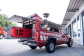 Das außer Dienst gestellte Unfallvorausfahrzeug wurde 2020 in Eigenregie zu einem Höhenrettungsfahrzeug umgebaut. Alle bisher im Höhenrettungsanhänger mitgeführten Geräte und Ausrüstungsgenstände finden nun in diesem Fahrzeug Platz.