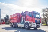 Als Trägerfahrzeug für das neue Einsatzfahrzeug dient ein MAN TGS 35.480. Der moderne Euro-6-Motor bringt mit seinen 480 PS die nötige Leistung zuverlässig auf die Straße und stellt auch unter anspruchsvollen Einsatzbedingungen ausreichend Kraftreserven zur Verfügung.