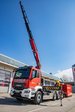 Hinter dem Fahrerhaus befindet sich der Ladekran vom Typ Palfinger PK 250 TEC. Dieses leistungsstarke Gerät ermöglicht ein breites Einsatzspektrum für das neue Fahrzeug und gewährleistet ein sicheres sowie präzises Arbeiten auch unter schwierigen Bedingungen. Die Bedienung erfolgt komfortabel über eine Funkfernsteuerung. Dadurch hat der Bediener die Last jederzeit optimal im Blick und kann feinfühlig sowie sicher arbeiten.
