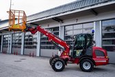 Ausstattung: Warneinrichtung und Beleuchtung; Anbaugeräte: Palettengabel, Schaufel, Schneepflug, Kehrmaschine, Arbeitskorb